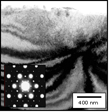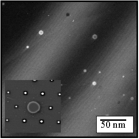 Bright field image shows faceting; diffraction pattern (inset) of c(2x2)